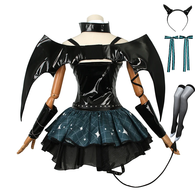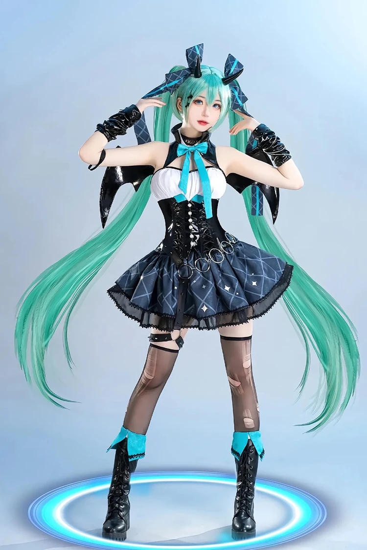 Women Sexy Demon Miku Cosplay Costumes Anime Devil Hatsune Cosplay Uniform Dress Wigs Wings Suit With Horns Tail Halloween Party
